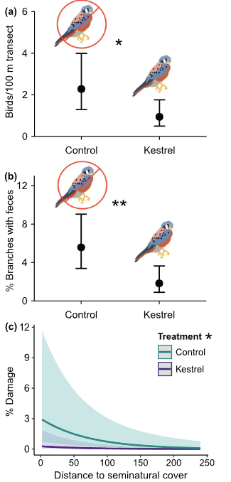 Falcons reduce pre-harvest food safety risks and crop damage from wild birds
